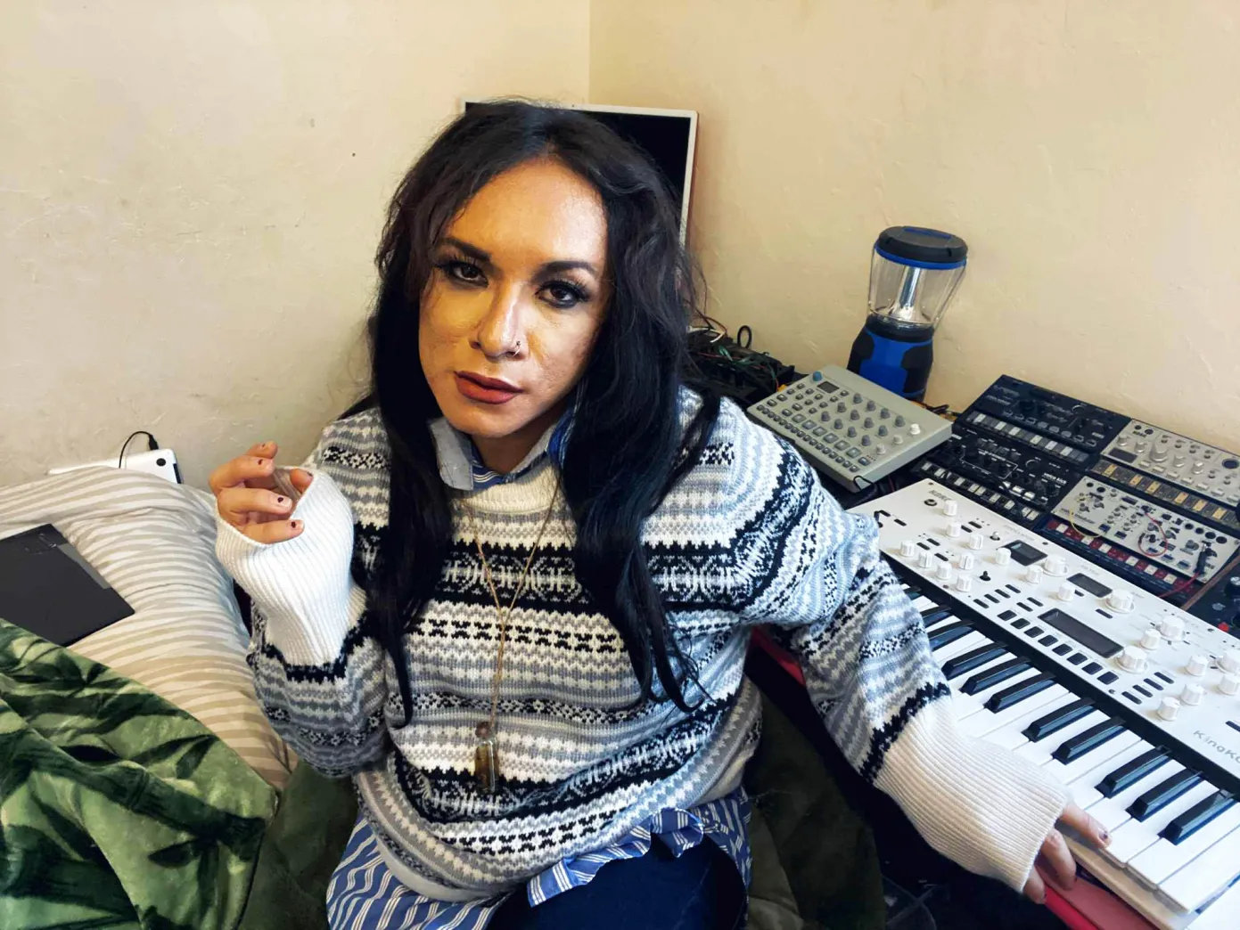 Data Mining is the forthcoming 10-track experimental album by Marcy Angeles, an Apache and Guamares Two Spirit musician/journalist based in New Mexico, and the author of books The Queers of The Underground and Immutable Amative Ballads. The concept of Data Mining is the search for information; in a society where our information is rarely kept sacred, we can’t always control who has access to it. Yet information is necessary in being-to-being interaction - we search our outer and inner worlds for information. Living with PTSD, Marcy often feels safer in her private bubble. Aside from the historical trauma that Indigenous People have experienced, she also faces the challenges of life as a Two Spirit person. Her People watch the way that society conducts itself, the way non-natives interact with or about Indigenous folks. The way that we all interact with ourselves - not only pertaining to political struggle but the politics of love, to find healing and answers about what to do next. “People with PTSD yearn for control but as spiritual people, sometimes we need to know when to surrender because Creator always knows what we need best.” - Marcy Angeles